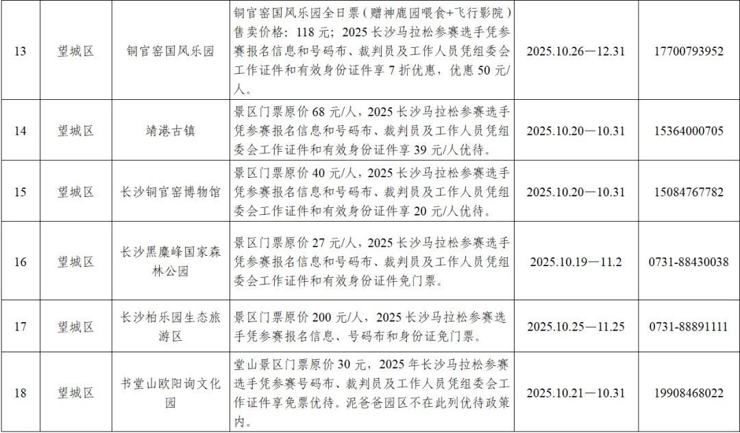 快来看看有哪些惊喜吧2025长沙马拉松品牌旅游景区优待活动