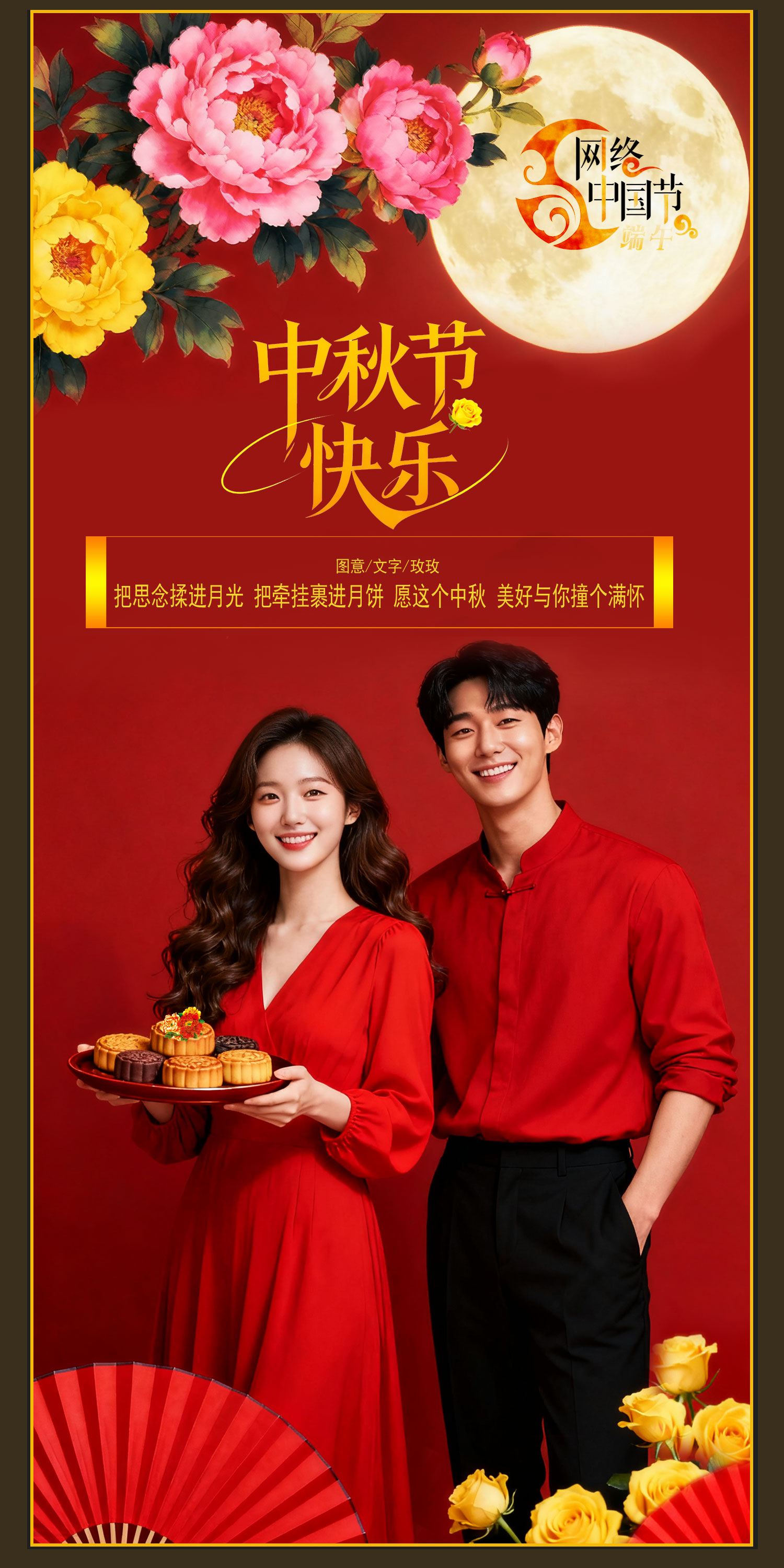 构图大图,图意美好,画面色彩喜庆靓丽,图文并茂,浓浓的节日氛围,制作精心精彩
